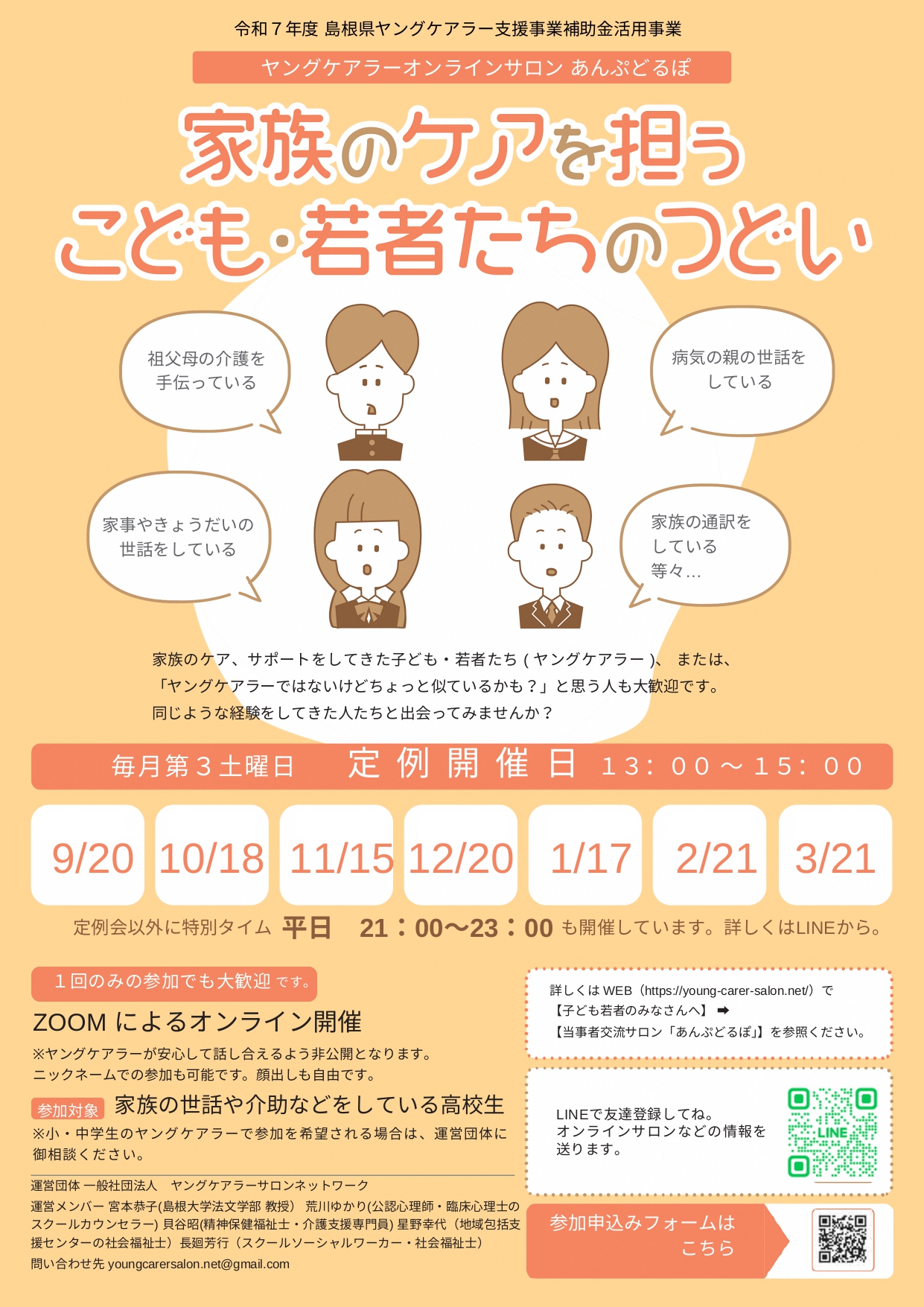 2025年度ヤングケアラーオンラインサロンあんぷどるぽのご案内